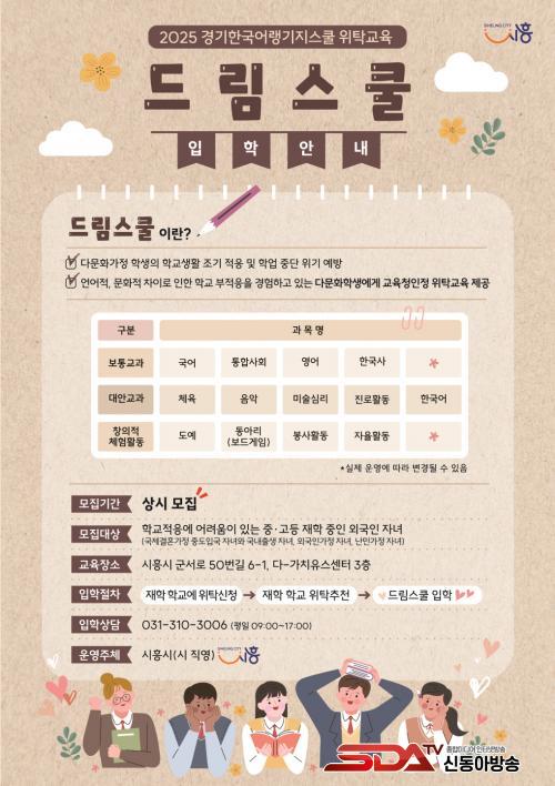 ½Ã´Â 2023³âºÎÅÍ °æ±âµµ±³À°Ã» °ø¸ð»ç¾÷À» ÅëÇØ Áß°í ÅëÇÕ 1°³ ¹ÝÀ» ¿î¿µÇϰí ÀÖÀ¸¸ç, ¿ÃÇØ·Î ¿î¿µ 3³â Â÷¸¦ ¸ÂÀº µå¸²½ºÄðÀº º¸Åë±³°ú(±¹¾î, Çѱ¹»ç, ¿µ¾î, ÅëÇÕ»çȸ), ´ë¾È±³°ú(üÀ°, Áø·ÎȰµ¿, ¹Ì¼ú½É¸®, Çѱ¹¾î, À½¾Ç), âÀÇÀû Ȱµ¿(µ¿¾Æ¸®, µµ¿¹ µî) µî ´Ù¾çÇÑ ºÐ¾ßÀÇ ±³°ú¸ñ ¿î¿µÀ» ÅëÇØ ÀÌÁÖ¹è°æÃ»¼Ò³â¿¡°Ô ´Ù¾çÇÑ ÇнÀ ±âȸ¸¦ Á¦°øÇϰí ÀÖ´Ù. À̹ø¿¡´Â 4¿ù 1ÀÏ °³°À» ¸ñÇ¥·Î °»çÁø ä¿ëÀ» ¿Ï·áÇß´Ù.