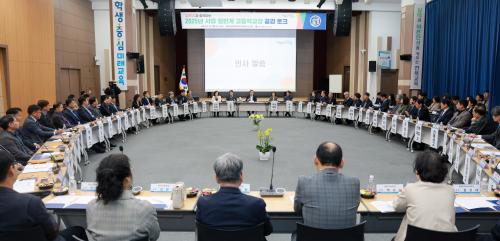 [½Åµ¿¾Æ¹æ¼Û=À̺´½Ä±âÀÚ] ¼­°Å¼® ÀüºÏƯº°ÀÚÄ¡µµ±³À°°¨Àº 28ÀÏ º»Ã» 2Ãþ °­´ç¿¡¼­ ¡®±³À°°¨°ú ÇÔ²²ÇÏ´Â »ç¸³Çб³Àå °£´ãȸ¡¯¸¦ ¿­¾î ÀϹݰè°í »ç¸³Çб³Àå 50¿© ¸í°ú ±³À°Á¤Ã¥À» °øÀ¯Çß´Ù.