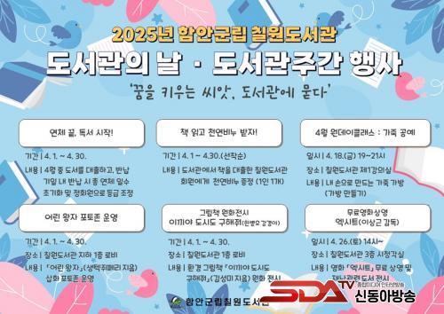 [½Åµ¿¾Æ¹æ¼Û °æ³²ÇÔ¾È=À̽ŵ¿±âÀÚ] ÇԾȱº¸³ Ä¥¿øµµ¼­°üÀº µµ¼­°üÀÇ ³¯(4.12.)°ú µµ¼­°ü ÁÖ°£(4.12.~18.)À» ¸Â¾Æ 4¿ù ÇÑ ´Þ µ¿¾È ´Ù¾çÇÑ ¹®È­Çà»ç¸¦ °³ÃÖÇÑ´Ù.