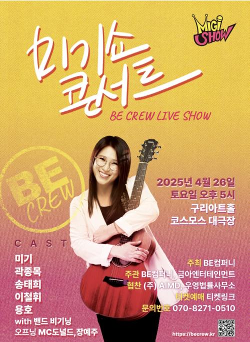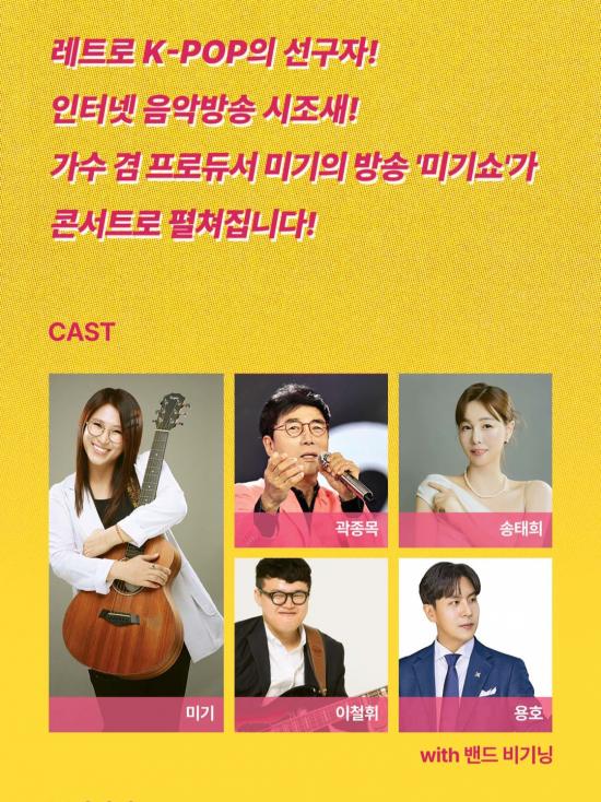 [½Åµ¿¾Æ¹æ¼Û=½Å°æ½Ä ±âÀÚ] ·¹Æ®·Î K-POPÀÇ ¼±±¸ÀÚ, ÀÎÅÍ³Ý À½¾Ç¹æ¼ÛÀÇ ½ÃÁ¶»õ¶ó ºÒ¸®¸ç ±×Áý¾Õ, õ³âÁö±â µî ¼ö¸¹Àº Ãß¾ïÀÇ °îµéÀ» ¿ªÁÖÇà ½ÃŲ ÁÖÀΰø, °¡¼ö °â ÇÁ·Îµà¼ ¹Ì±â°¡ ¿À´Â 4¿ù 26ÀÏ ±¸¸®¾ÆÆ®È¦ ÄÚ½º¸ð½º ´ë±ØÀå¿¡¼ ÄܼƮ¸¦ ÆîÄ£´Ù. À̹ø ÄܼƮ´Â ±×°¡ ÁøÇàÇÏ´Â ¹æ¼Û '¹Ì±â¼î'¸¦ °ø¿¬À¸·Î È®ÀåÇÑ '¹Ì±â¼î ÄܼƮ'·Î ¿Â¶óÀο¡¼ º¸¿©ÁÖ¾ú´ø ¿Á¤ÀÇ ¶óÀ̺긦 ÇöÀå¿¡¼ ¹êµå¿Í ÇÔ²² ´õ¿í Ä¿´Ù¶õ ¿¡³ÊÁö·Î ÁõÆø½ÃŰ´Â ¶ß°Å¿î ÇöÀå °ø¿¬ÀÌ µÉ °ÍÀ̶ó °ü°èÀÚ´Â ÀüÇÑ´Ù. ¹Ì±â¿Í ÀýÄ£À¸·Î ¹Ì±â¿Í ÇÔ²² µà¿§¹«´ë ¹æ¼ÛÃ⿬µî Ȱ¹ßÇÑ È°µ¿À» º¸¿©Áֱ⵵ ÇÑ 7080ÀÇ ´ëÇ¥±×·ì °Ç¾ÆµéÀÇ º¸Äà °ûÁ¾¸ñµµ À̹ø ÄܼƮ¿¡ ÇÔ²² ÇÑ´Ù. ÃÖ±Ù '¶±»ó°¢'À¸·Î ¼Ö·Î Ȱµ¿¿¡µµ ¸ÅÁøÇϰí ÀÖ´Â °ûÁ¾¸ñÀº ´Ù¾çÇÑ ¹«´ë¸¦ ÅëÇØ ¹Ì±â¼î ÄܼƮ¿¡ ´ÙÀ̳ª¹ÍÀ» ´õÇÒ ¿¹Á¤ÀÌ´Ù. ¶ÇÇÑ ÀÛ°î°¡À̱⵵ ÇÑ ¹Ì±âÀÇ °îÀ¸·Î ¿Õ¼ºÇÑ È°µ¿À» º¸¿©ÁÖ°í ÀÖ´Â ¹Ì½ºÅÍÆ®·Ô2ÀÇ ¿ëÈ£(´ëÇ¥°î : Çâ±â ¾ø´Â ²É)¿Í »óÅÇÑ º¸À̽º·Î µ¿¼³²ºÏÀ¸·Î Ȱµ¿À» È®ÀåÇϰí ÀÖ´Â ¼ÛÅÂÈñ(´ëÇ¥°î : ²É±¸¸§)µµ Ãâ¿¬ÇØ ¹«´ë¸¦ ´Ùä·Ó°Ô ²Ù¹Î´Ù. ¹Ì±âÀÇ À½¾ÇÆÀ ºñÀÌÅ©·ç¿¡¼ ¸¹Àº °îµéÀ» Æí°îÇÑ º£À̽ýºÆ®ÀÌÀÚ À½¾Ç°¨µ¶ÀÎ ÀÌöÈÖµµ ¿À·£¸¸¿¡ ¿¬ÁÖÀڷμ ¹«´ë¿¡ ¿À¸¥´Ù.