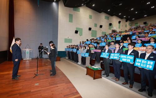 Çà»ç¿¡¼´Â û·ÅÇÑ °øÁ÷¹®È¸¦ ¸¸µé±â À§ÇÑ °áÀǹ® ³¶µ¶ÀÌ ÀÌ·ïÁ³À¸¸ç, Âü¼®ÀÚµéÀº ¡°¿ì¸®´Â °øÁ÷Àڷμ ¹ý°ú ¿øÄ¢À» ÁؼöÇÏ°í ºÎÆÐ¸¦ ¿¹¹æÇÔÀ¸·Î½á û·ÅÇÑ °øÁ÷»çȸ¸¦ ¸¸µé¾î ³ª°¡°Ú´Ù¡±´Â ³»¿ëÀÇ °áÀǹ®À» ÇÔ²² ³¶µ¶ÇÏ¸ç ½Çõ ÀÇÁö¸¦ ´ÙÁ³´Ù.