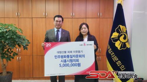 ÇÑÆí, ¹ÎÁÖÆòÅë ½ÃÈï½ÃÇùÀÇȸ´Â Áö¿ª ³» ¾î·Á¿î Å»ºÏ¹ÎÀ» µ½±â À§ÇÑ ÅëÀÏÀåÇÐ±Ý Àü´Þ µî ´Ù¾çÇÑ ³ª´® Ȱµ¿À» ²ÙÁØÈ÷ ½ÇõÇϸç Áö¿ª»çȸ¿¡ ¼±ÇÑ ¿µÇâ·ÂÀ» À̾°í ÀÖ´Ù.