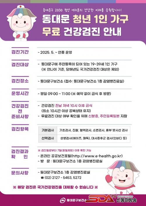 À̹ø »ç¾÷Àº µ¿´ë¹®±¸¿¡ Áֹεî·ÏÀÌ µÇ¾î ÀÖ´Â 19¼¼ºÎÅÍ 39¼¼ ÀÌÇÏ(¿¬³ªÀÌ ±âÁØ)ÀÇ Ã»³â 1Àΰ¡±¸¸¦ ´ë»óÀ¸·Î Çϸç, ¿¬ 1ȸ ¹«·á °Ç°°ËÁø ¼ºñ½º¸¦ Á¦°øÇÑ´Ù. ´Ù¸¸ ÇØ´ç ¿¬µµ ±¹°¡°Ç°°ËÁø ´ë»óÀÚ´Â Á¦¿ÜµÈ´Ù.