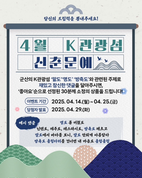 ½Ã´Â 4¿ù 25ÀϱîÁö ±º»ê k-°ü±¤¼¶ °ø½Ä ÀνºÅ¸±×·¥(gunsan_k_island/±º»ê k-°ü±¤¼¶) °èÁ¤¿¡¼ ½ÅÃá¹®¿¹ ¿Â¶óÀÎ(SNS) Çà»ç¸¦ ÁøÇàÇÑ´Ù°í ¹àÇû´Ù.