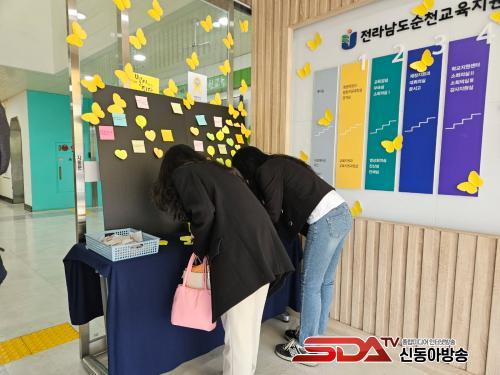 À̳¯ Çà»ç´Â ¼øÃµ±³À°Áö¿øÃ» Á÷¿ø 100¿©¸í°ú ÇÔ²² ¹¬³ä, Ã߸ð ¸Þ½ÃÁö ÀÛ¼º µîÀÇ ½Ã°£À» ÇÔ²²Çß´Ù. Âü¼®ÀÚµéÀº ¡®304°³ÀÇ º°¡¯·Î ³²Àº Èñ»ýÀÚµéÀ» ±â¾ïÇϸç, ´Ù½Ã´Â ÀÌ·¯ÇÑ ºñ±ØÀÌ ¹Ýº¹µÇÁö ¾Êµµ·Ï °¢ÀÚÀÇ ÀÚ¸®¿¡¼ ¾ÈÀüÀ» ½ÇõÇÒ °ÍÀ» ´ÙÁüÇß´Ù.