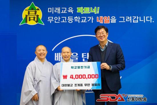 [½Åµ¿¾Æ¹æ¼Û Àü³²¹«¾È=À̽ŵ¿±âÀÚ] ´ëÇѺұ³ Á¶°èÁ¾ ¹«¾È ºÀºÒ»ç´Â 4¿ù 17ÀÏ, ¹«¾È°íµîÇб³¿¡ Çб³¹ßÀü±â±Ý 400¸¸ ¿øÀ» ±âŹÇϸç Áö¿ª ±³À°¿¡ ´ëÇÑ ±íÀº ¾ÖÁ¤À» ÀüÇß´Ù. À̹ø ±â±ÝÀº ¹«¾È°íÀÇ Çлý ±³À° Ȱµ¿°ú ±³À°È¯°æ °³¼±À» À§ÇÑ ¸ñÀûÀ¸·Î »ç¿ëµÉ ¿¹Á¤À̸ç, °æÁ¦ÀûÀ¸·Î ¾î·Á¿î ÇлýµéÀ» À§ÇÑ ÀåÇбÝÀ¸·Î Áö¿øµÈ´Ù.