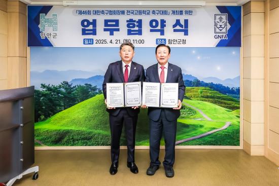 [½Åµ¿¾Æ¹æ¼Û °æ³²ÇÔ¾È=À̽ŵ¿±âÀÚ] ÇԾȱºÀº Áö³­ 21ÀÏ ÇԾȱºÃ» ±º¼ö½Ç¿¡¼­ °æ»ó³²µµÃ౸Çùȸ¿Í Á¦46ȸ ´ëÇÑÃ౸ÇùȸÀå¹è Àü±¹°íµîÇб³ Ã౸´ëȸ °³ÃÖ¸¦ À§ÇÑ ¾÷¹« Çù¾àÀ» ü°áÇß´Ù°í ¹àÇû´Ù.