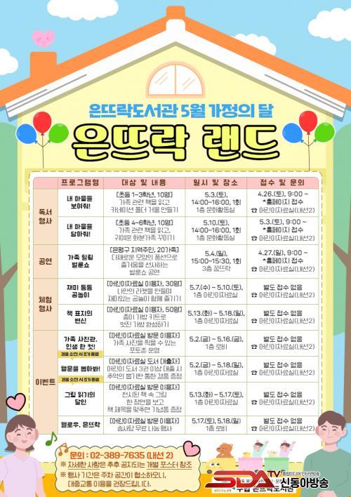 ¡®Àº¶ß¶ô ·£µå¡¯´Â °¡Á·ÀÌ ¼ÒÅëÇϰí ÈÇÕÇØ °Ç°ÇÑ °¡Á·À» Á¶¼ºÇÏ´Â µ¥ µµ¿òÀ» ÁÖ°íÀÚ ¸¶·ÃµÆ´Ù. À̹ø Çà»ç´Â ³»´Þ 2ÀϺÎÅÍ 18ÀϱîÁö µµ¼°ü ÀÌ¿ëÀÚ¿Í Áö¿ª ÁÖ¹ÎÀ» ´ë»óÀ¸·Î °ø¿¬, üÇèÇà»ç, µ¶¼ ¡¤ µ¶ÈÄȰµ¿, À̺¥Æ® µî ´Ù¾çÇÑ ÇÁ·Î±×·¥À» ¿î¿µÇÒ ¿¹Á¤ÀÌ´Ù.
