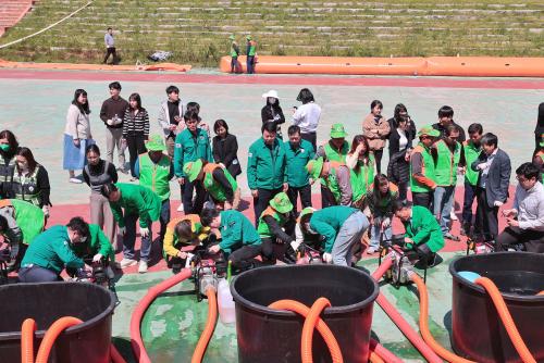 À̳¯ ¿À¼ºÈ¯ ´çÁø½ÃÀåÀ» ºñ·ÔÇÑ °ü°è °ø¹«¿ø 90¿© ¸í°ú ¿øÁ¾µ· ´çÁø½ÃÀÚÀ²¹æÀç´ÜÀåÀ» ºñ·ÔÇÑ ÀÚÀ²¹æÀç´Ü¿ø 50¿© ¸í µî ÃÑ 140¿© ¸íÀÌ Âü¿©ÇÑ °¡¿îµ¥±³À°ÈÆ·ÃÀÌ ÁøÇàµÆ´Ù.