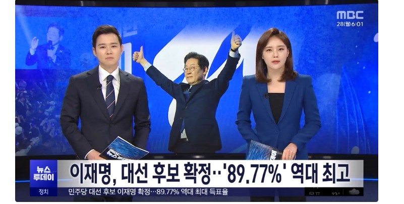 ÀÌÀç¸íÀº, 27ÀÏ °æ±â °í¾ç½Ã ŲŨ½º¿¡¼ ¿¸° ¼öµµ±Ç¡¤°¿ø¡¤Á¦ÁÖ °æ¼±¿¡¼ Àü±¹´ëÀÇ¿ø ¹× ±Ç¸®´ç¿ø ÅõÇ¥ ÇÕ»ê 91.54%¸¦ È®º¸Çß°í, ¿©±â¿¡ Áö³ ÃæÃ»±Ç¡¤¿µ³²±Ç¡¤È£³²±Ç °æ¼± °á°ú¿Í, Àç¿Ü±¹¹Î ÅõÇ¥, ±¹¹Î¼±°ÅÀδÜ(¿©·ÐÁ¶»ç) ÅõÇ¥¸¦ ÇÕ»êÇÑ ÃÖÁ¾ 89.77%¶ó´Â ¾ÐµµÀû µæÇ¥À²·Î È常¦ È®Á¤Çß´Ù.