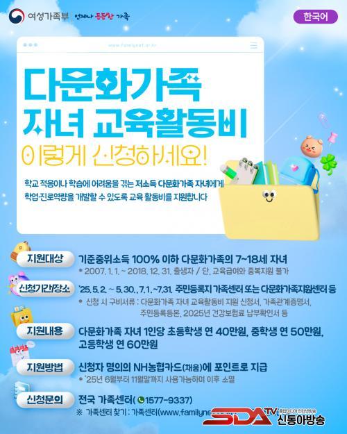 Ȱµ¿ºñ Áö¿ø ´ë»óÀº ±³À° ±Þ¿©(ÁßÀ§¼Òµæ 50% ÀÌÇÏ)¸¦ ¹ÞÁö ¾Ê´Â ±âÁØÁßÀ§¼Òµæ 100% ÀÌÇÏ ½ÃÈï½Ã ´Ù¹®È°¡Á·ÀÇ 7~18¼¼(2007³â 1¿ù 1ÀÏ~2018³â 12¿ù 31ÀÏ Ãâ»ý) ÀÚ³à´Ù. Çб³¿¡ ÀçÇÐ ÁßÀÌÁö ¾ÊÀº Àڳ൵ Áö¿ø ´ë»ó¿¡ Æ÷ÇԵȴÙ.