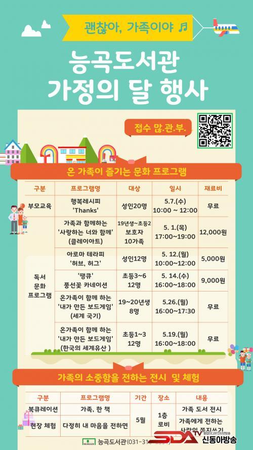 ÀÌ ¹Û¿¡µµ ´É°îµµ¼°üÀº 5¿ù ÇÑ ´Þ µ¿¾È °¡Á·ÀÇ ÀÇ¹Ì¿Í ¼ÒÁßÇÔÀ» È®ÀÎÇÏ´Â ´Ùä·Î¿î ÇÁ·Î±×·¥À» ÁøÇàÇÑ´Ù. ´Ù¾çÇÑ °¡Á·ÀÇ ¸ð½ÀÀ» ´Ù·é ¡®°¡Á·, ÇÑ Ã¥¡¯ µµ¼ Àü½Ã, °¡Á·¿¡°Ô »ç¶û°ú °¨»çÀÇ ¸¶À½À» ÀüÇÏ´Â ÆíÁö ¾²±â ¡®´ÙÁ¤È÷ ³» ¸¶À½À» ÀüÇϸ顯ÀÌ ÁøÇà ÁßÀÌ´Ù.