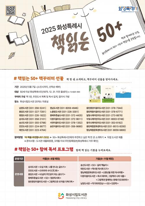 ½Ã¿¡ °ÅÁÖÇÏ´Â 50¼¼ ÀÌ»ó ½Ã¹Î(1975.12.31. ÀÌÀü Ãâ»ýÀÚ)À» ´ë»óÀ¸·Î Çϸç, °¨¸í ±í°Ô ÀÐÀº Ã¥À» ¼Ò°³ÇÏ¸é ¡®Ã¥²Ù·¯¹Ì ¼±¹°¡¯À» Á¦°øÇÏ´Â Âü¿©Çü À̺¥Æ®¿Í ´Ù¾çÇÑ µ¶¼ ÇÁ·Î±×·¥ÀÌ ÇÔ²² ÁøÇàµÈ´Ù.