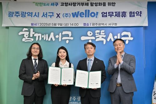 [½Åµ¿¾Æ¹æ¼Û=ÀÌÁöÇö±âÀÚ] ±¤ÁÖ±¤¿ª½Ã ¼­±¸(±¸Ã»Àå ±èÀ̰­)°¡ °íÇâ»ç¶û±âºÎÁ¦ Ȱ¼ºÈ­¿Í Áö¿ª°æÁ¦ ÀÚ»ý·Â °­È­¸¦ À§ÇØ ¹Î°£ Ç÷§ÆûÀÎ ¢ßÀ£·Î(´ëÇ¥ ±èÀ¯¸®¾È³ª)¿Í 9ÀÏ ¾÷¹«Çù¾àÀ» ü°áÇϰí, Àü±¹ ÃÖÃÊ·Î ¸ð¹ÙÀÏ ±â¹Ý °íÇâ»ç¶û±âºÎ ¼­ºñ½º¸¦ µµÀÔÇÑ´Ù.