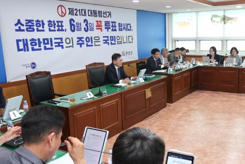 ¹«¾È±ºÀº ¼±°Å»ç¹«ÀÇ °øÁ¤¼º°ú ¿øÈ°ÇÑ ÁøÇàÀ» À§ÇØ ±º¡¤À¾¸é °ø¸í¼±°Å Áö¿ø ´ã´çÁ¦¸¦ ¿î¿µÇϰí ÀÖÀ¸¸ç, ¼±°ÅÀÎ ¸íºÎ ÀÛ¼º, ¼±°Å°øº¸¡¤ÅõÇ¥¾È³»¹® ¹ß¼Û, Åõ¡¤°³Ç¥ Áö¿ø µî ¹ýÁ¤ »ç¹«°¡ Â÷Áú ¾øÀÌ ÃßÁøµÇµµ·Ï öÀúÈ÷ ÁغñÇϰí ÀÖ´Ù.