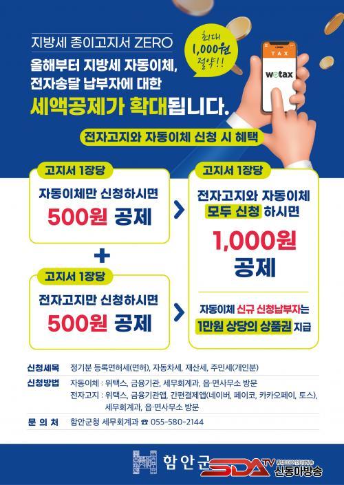 ÀüÀÚ°íÁö´Â ±âÁ¸ Á¾ÀÌ °íÁö¼ ´ë½Å ÀüÀÚ¿ìÆíÀ̳ª ¸ð¹ÙÀÏ ¾ÛÀ¸·Î °íÁö¼¸¦ ¹Þ´Â ¹æ½ÄÀ̸ç, ÀüÀÚ°íÁö¿Í ÀÚµ¿³³ºÎ Áß Çϳª¸¸ ½ÅûÇÏ¸é °íÁö¼ 1Àå´ç ±âÁ¸ 250¿ø¿¡¼ 500¿øÀ¸·Î, ¸ðµÎ ½ÅûÇÏ¸é ±âÁ¸ 500¿ø¿¡¼ 1,000¿øÀ¸·Î ¼¼¾× °øÁ¦±Ý¾×ÀÌ È®´ëµÇ¾ú´Ù.