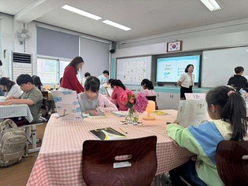 À̹ø ¼ö¾÷Àº ¡®Ã¥ ½Ã½Äȸ¡¯¸¦ ÅëÇØ ÇлýµéÀÌ Á÷Á¢ °í¸¥ Ã¥À» ´Ù¾çÇÑ ¹æ½ÄÀ¸·Î ¸Àº¸µí Ž»öÇÏ¸ç ±â´ëµÇ´Â Ã¥À» ¼±Á¤Çϴ Ȱµ¿À¸·Î ±¸¼ºµÆ´Ù. ±³½Ç °÷°÷¿¡ ÆîÃÄÁø ÇÐ±Þ ¹®°í Ã¥µéÀ» ÀÚÀ¯·Ó°Ô µ¹¾Æ´Ù´Ï¸ç Ç¥Áö, ¶ìÁö, ÀÛ°¡ ¼Ò°³, Ä£±¸ÀÇ Ãßõ¼ µîÀ» »ìÆìº¸°í, óÀ½ ¸î ÀåÀ» Á÷Á¢ Àо¸ç Ã¥°úÀÇ °Å¸®¸¦ Á¼È÷´Â ½Ã°£À» °¡Á³´Ù. ¾ÆÀ̵éÀº ÀÚ½ÅÀÌ °í¸¥ Ã¥¿¡ ´ëÇÑ Ã¹ÀλóÀ» ¸Þ´ºÆÇ¿¡ ±â·ÏÇϰí, ¸¶Áö¸·¿¡´Â °¡Àå ±â´ëµÇ´Â Ã¥¿¡ ÅõÇ¥ÇÏ¸ç ±× ÀÌÀ¯¸¦ ÇÔ²² ³ª´³´Ù.