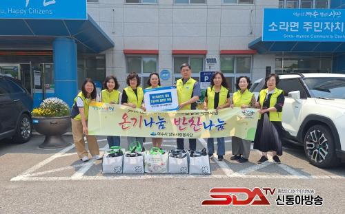 »çÁø= ³²µµ»ç¶û ¿©¼ö½ÃºÀ»ç´Ü(´ÜÀå ±è¿µ¼÷)ÀÌ Áö³­ 29ÀÏ ¼Ò¶ó¸é Ãë¾à°èÃþ ¾î¸£½ÅÀ» À§ÇØ ¿µ¾ç °¡µæÇÑ ¹Ø¹ÝÂùÀ» Áö¿øÇß´Ù.