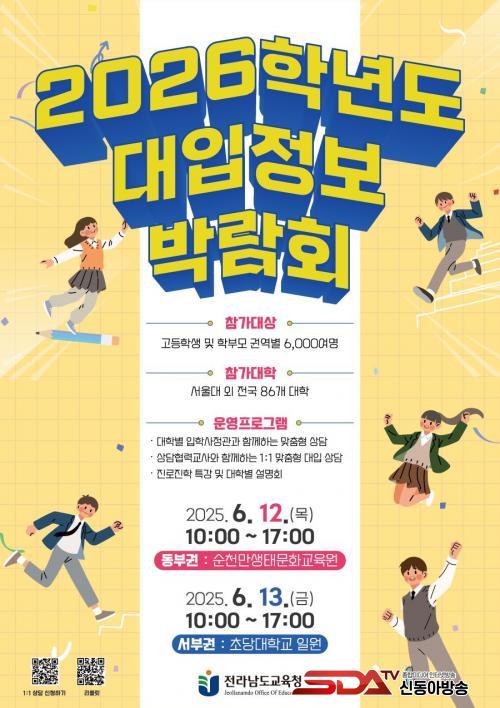 [½Åµ¿¾Æ¹æ¼Û Àü³²=À̽ŵ¿±âÀÚ] Àü¶ó³²µµ±³À°Ã»Àº ¿À´Â 6¿ù 12ÀÏ Àü¶ó³²µµ±³À°Ã»¼øÃµ¸¸»ýŹ®È­±³À°¿ø°ú 13ÀÏ ÃÊ´ç´ëÇб³¿¡¼­ ¡®2026Çг⵵ ´ëÀÔÁ¤º¸ ¹Ú¶÷ȸ¡¯¸¦ °³ÃÖÇÑ´Ù.