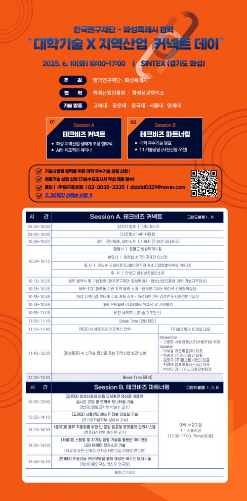 Çà»ç ÁÖ¿ä ³»¿ëÀº ¡ãÇѱ¹¿¬±¸Àç´Ü ±â¼ú»ç¾÷È­(NRF-TCC)Ç÷§Æû ±â¹Ý Áö¿ª Çù·Â ¼Ò°³ ¡ãÈ­¼º Å×Å©³ëÆú ±¸Ãà Àü·« ¼Ò°³ ¡ãÈ­¼º½Ã¿Í Çѱ¹¿¬±¸Àç´Ü °£ ¾÷¹«Çù¾à ü°á ¡ãAI ±â¼ú Ư°­°ú ÆÐ³ÎÅä·Ð µîÀÌ ÁغñµÅ ÀÖ´Ù.