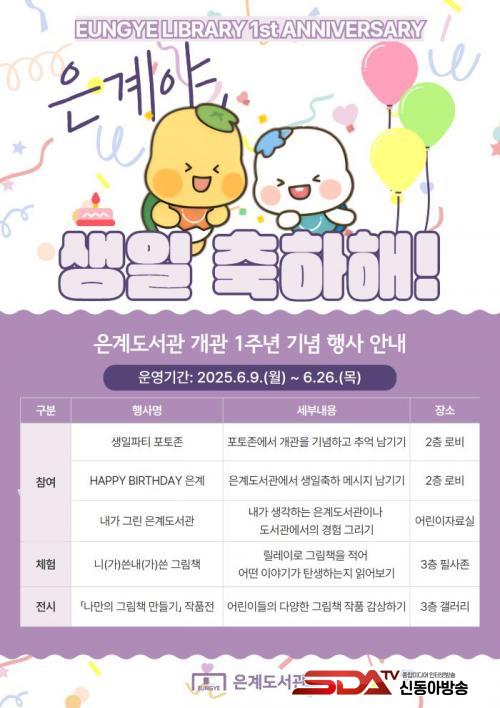 6¿ù 9ÀϺÎÅÍ 26ÀϱîÁö ¾à 3ÁÖ°£ ¿î¿µµÇ´Â °³°ü 1Áֳ⠱â³äÇà»ç´Â »ýÀÏ ÆÄƼ Æ÷ÅäÁ¸, ¡®ÇØÇǹú½ºµ¥ÀÌ(HAPPY BIRTHDAY) Àº°è¡¯(»ýÀÏ ÃàÇÏ ¸Þ½ÃÁö ³²±â±â), ³»°¡ ±×¸° Àº°èµµ¼°ü, ´Ï(°¡) ¾´ ³»(°¡) ¾´ ±×¸²Ã¥(¸±·¹ÀÌ ±×¸²Ã¥ ¾²±â) µî ½Ã¹Î ´©±¸³ª ÀÚÀ¯·Ó°Ô Âü¿©ÇÒ ¼ö ÀÖ´Â ´Ùä·Î¿î ÇÁ·Î±×·¥À¸·Î ±¸¼ºµÆ´Ù.