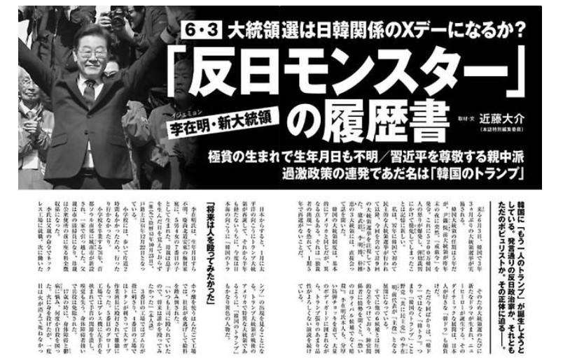 Áö³­ 6ÀÏ ÀϺ» ÁÖ°£Áö ÁÖ°£Çö´ë´Â "'¹ÝÀÏ ¸ó½ºÅÍ' »õ ´ëÅë·É ÀÌÀç¸íÀÇ À̷¼­"¶ó´Â Á¦¸ñÀÇ ±â»ç¿¡¼­ ÀÌÀç¸í ´ëÅë·É¿¡ °üÇØ ¡®»ý³â¿ùÀϵµ ¸ð¸£´Â ±ØºóÇÑ Ãâ»ý, °ú°ÝÇÑ Á¤Ã¥ ¿¬¹ß·Î ¡®Çѱ¹ÀÇ Æ®·³ÇÁ¡¯¶ó´Â µî ¿ø»öÀûÀ¸·Î ºñ³­Çϱ⠽ÃÀÛÇß´Ù.