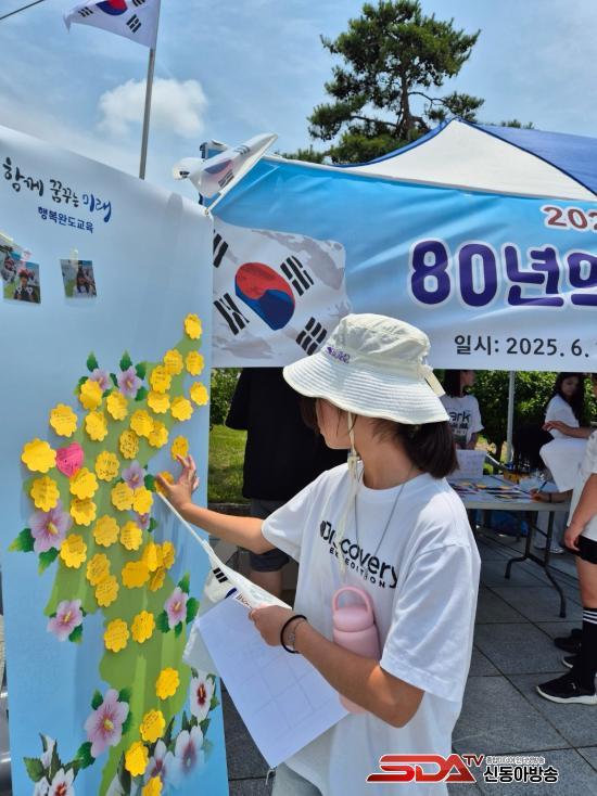 ºÎ½º ¿î¿µÀº ÇлýÀÚÄ¡ ÇöÀåÁö¿ø´Ü ¼Ò¼Ó ±³»ç¿ÍÀÇ Çù·Â ¾Æ·¡, ÇлýµéÀÌ Á÷Á¢ ÄÜÅÙÃ÷¸¦ ±âÈ¹ÇØ Âü¿©ÀÚ¿Í ¼ÒÅëÇß´Ù. ¡®¼Ò¾ÈÀÇ Ç×ÀÏ ¿ª»ç ¾Ë¸®±â¡¯ Ä«µå´º½º¸¦ Á¦ÀÛÇØ ÇöÀå¿¡ °øÀ¯Çϰí, ¡®¹«±ÃÈ ±â¾ï¸¶´ç¡¯¿¡¼´Â µ¶¸³¿îµ¿°¡ À̸§°ú µ¶¸³ ¸í¾ðÀ» ÇÊ»çÇÏ¸ç ±â¾ïÀ» µÇ»õ°åÀ¸¸ç, ¡®µ¶¸³ÀÇ ¹Ù¶÷¡¯ Äڳʿ¡¼´Â űرâ Á¾À̺ñÇà±â¸¦ ³¯·Á °øµ¿Ã¼ ÀǽÄÀ» ÇÔ²² ³ª´³´Ù.