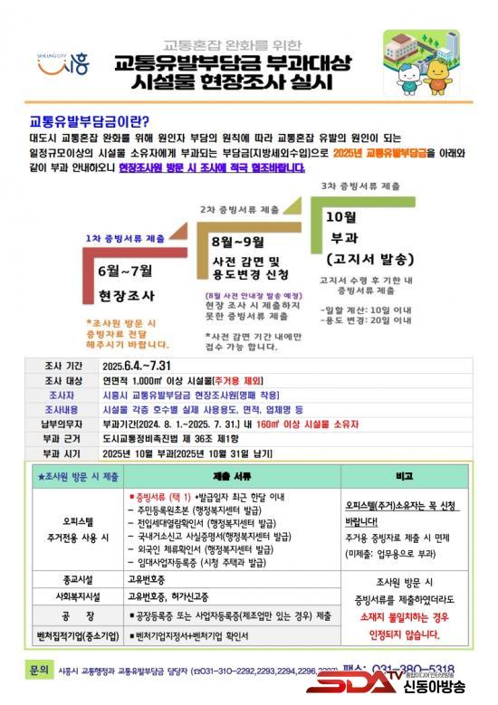 [½Åµ¿¾Æ¹æ¼Û ½ÃÈï½Ã=À̽ŵ¿±âÀÚ] ½ÃÈï½Ã´Â 6¿ù 2ÀϺÎÅÍ 7¿ù 31ÀϱîÁö °ü³» ¿¬¸éÀû 1,000§³ ÀÌ»ó ½Ã¼³¹°À» ´ë»óÀ¸·Î ¡®2025³âµµ ±³ÅëÀ¯¹ßºÎ´ã±Ý¡¯ ºÎ°ú¸¦ À§ÇÑ ÇöÀå Á¶»ç¸¦ ÃßÁøÇÑ´Ù.