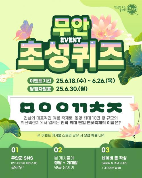À̹ø À̺¥Æ®´Â ÃàÁ¦ °³¸·ÀÏÀÎ 26ÀϱîÁö ÁøÇàµÇ¸ç, ¹«¾È¿¬²ÉÃàÁ¦¸¦ ³Î¸® ¾Ë¸®°í ¹æ¹®°´µéÀÇ Âü¿©¸¦ À¯µµÇÏ´Â °è±â°¡ µÉ ¿¹Á¤ÀÌ´Ù.