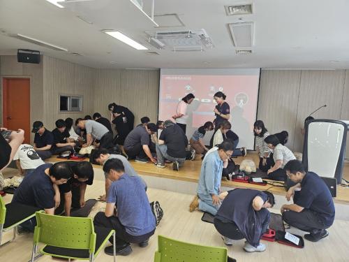 Âü°¡ÀÚµéÀº Àü¹®°»çÀÇ Áöµµ ¾Æ·¡ ¸¶³×Å·°ú AED¸¦ Ȱ¿ëÇØ ¿Ã¹Ù¸¥ ½ÉÆó¼Ò»ý¼ú ÀÚ¼¼¿Í °¡½¿¾Ð¹Ú ¹æ¹ý, ±â±â »ç¿ë¹ý µîÀ» Á÷Á¢ üÇèÇß´Ù. ƯÈ÷ AED °ü¸®Ã¥ÀÓÀÚ¿¡°Ô´Â ±â±âÀÇ Á¡°Ë ¹× À¯Áö°ü¸® ¿ä·Éµµ ÇÔ²² ¾È³»ÇØ ½ÇÁ¦ »óȲ¿¡¼ÀÇ ´ëÀÀ ¿ª·® °È¿¡ ÁýÁßÇß´Ù.