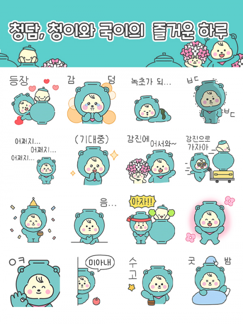 ¸ÕÀú ¡®Ã»´ã¡¯Àº °ÁøÀÇ ´ëÇ¥ À¯»êÀÎ °í·ÁûÀÚ¸¦ ¸ðƼºê·Î ÇÑ Ä³¸¯ÅÍ´Ù. ûÀÚ ÇüÅÂÀÇ ¸öü¿¡ ºÐÈ«»ö º¼ ÅÍÄ¡¿Í °ö½½ ¾Õ¸Ó¸®°¡ Ư¡ÀÌ´Ù. ±×¸®°í µÕ±Û°í ¸Å²öÇÑ Ã»ÀÚ Ç׾Ƹ®¸¦ ¸ðƼºê·Î ¶Ñ²±À» ¾²°í ¾Æ±â ¾ó±¼ÀÌ Æ÷ÀÎÆ®ÀÎ ¡®Ã»ÀÌ¡¯¿Í ¸Ó¸®¿¡ Ä¿´Ù¶õ ¼ö±¹ ²ÉÀ» ¸Ó¸®¿¡ Àå½ÄÇϰí ÀÖ´Â ±Í¿©¿î ij¸¯ÅÍÀÇ ¡®±¹ÀÌ¡¯±îÁö, °¢°¢ °ÁøÀÇ ÀüÅë°ú ÀÚ¿¬À» »ó¡ÀûÀ¸·Î Ç¥ÇöÇϰí ÀÖ´Ù.
