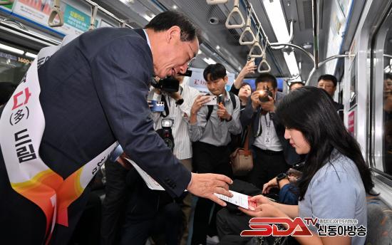 »çÁø=À¯Á¤º¹ ÀÎõ±¤¿ª½ÃÀåÀÌ 30ÀÏ ÀÎõ1È£¼± ¿­Â÷¿¡¼­ ½Â°´µé¿¡°Ô '¾ÆÀÌÇ÷¯½º(i+) Â÷ºñµå¸²' À» È«º¸Çϰí ÀÖ´Ù.