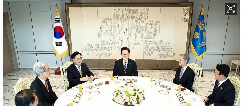»çÁø=3ÀÏ ¿ë»ê ´ëÅë·É½Ç¿¡¼­ 5ºÎ ¿äÀÎ ¿ÀÂùÀÌ ÀÖ¾ú´Ù. ÀÌ ÀÚ¸®¿¡¼­ Á¶Èñ´ë´Â ±¹¹Î ÇлìÀ» ¸í·ÉÇÑ À±¼®¿­ ³»¶õ¿¡´Â ÀÔ ´Ý´õ´Ï ÃÖ±Ù »ç¹ýºÎ °³Çõ¿¡ ´ëÇØ¼­´Â ºÎÁ¤ÀûÀÎ ÀǰßÀ» Ç¥ÃâÇß´Ù. sns