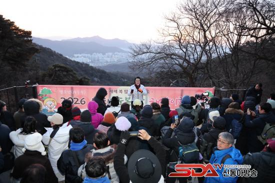 [½Åµ¿¾Æ¹æ¼Û µµºÀ±¸=À̽ŵ¿±âÀÚ] ¡®ºÓÀº ¸»ÀÇ ÇØ¡¯ º´¿À³â(ܰçíÒ´) »õÇØ°¡ ¹à¾Ò´Ù. 2026³â ù³¯ÀÎ 1¿ù 1ÀÏ 500¿© ¸íÀÇ ±¸¹ÎÀº ÀÏÃâÀ» º¸±â À§ÇØ µµºÀ»êÀ» ã¾Ò´Ù. À̳¯ ¼¿ï µµºÀ±¸´Â µµºÀ»ê õÃà»ç¿¡¼ ÇÑ ÇØ ¼Ò¸ÁÀ» ±â¿øÇÏ´Â ÇØ¸ÂÀÌ Çà»ç¸¦ °³ÃÖÇß´Ù. Çà»ç¿¡¼´Â ½ÄÀü°ø¿¬, »õÇØ±â¿ø, Ä«¿îÆ®´Ù¿î, ¸¸¼¼»ïâ µîÀÌ ÁøÇàµÆ´Ù.