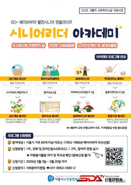 [½Åµ¿¾Æ¹æ¼Û ½ÃÈï½Ã=À̽ŵ¿±âÀÚ] ½ÃÈï½Ã³ëÀÎÁ¾ÇÕº¹Áö°üÀº õÁÖ±³¼ö¿ø±³±¸ÀÇ Áö¿øÀ» ¹Þ¾Æ º£À̺ñºÎ¸Ó ¼¼´ë¸¦ À§ÇÑ Àü¹®ÀÚ°Ý ¾ç¼º°úÁ¤ ¡®½Ã´Ï¾î¸®´õ ¾ÆÄ«µ¥¹Ì¡¯¸¦ ¿À´Â 4¿ùºÎÅÍ ¿î¿µÇÏ´Â °¡¿îµ¥, Âü°¡ ¾î¸£½ÅÀ» ¸ðÁýÇÑ´Ù.