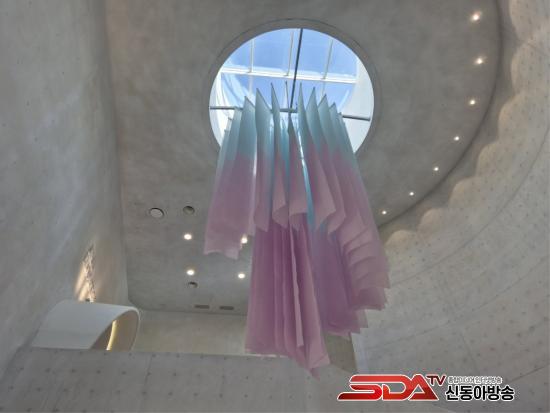 ¶ÇÇÑ ¡®ÆÄ³ë¶ó¸¶ ¿µ»ó½Ç¡¯¿¡¼­´Â 4¸é ¹Ìµð¾î¾ÆÆ®°¡ ºû°ú À½¾Ç, ¿µ»óÀ» °áÇÕÇÑ ¸ôÀÔÇü ÄÜÅÙÃ÷°¡ ÆîÃÄÁö¸ç, ½ÇÅ©ÀÇ ºÎµå·¯¿î È帧°ú Áú°¨À» ½Ã°¢ÀûÀ¸·Î ±¸ÇöÇÑ´Ù. °ø°£ Àüü¸¦ °¨½Î´Â ¿µ»ó ¿¬ÃâÀº »ê¾÷ ¼ÒÀç¿´´ø ½ÇÅ©¸¦ ÇϳªÀÇ ¿¹¼úÀû ¡®¿ÀºêÁ¦(Objet)¡¯·Î ÀçÇØ¼®ÇÑ´Ù.