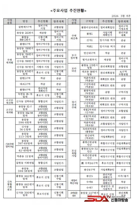 ÇöÀç ±¸ ³» Á¤ºñ»ç¾÷Àº °ËÅäµÇ°í ÀÖ´Â Áö¿ªÀ» Æ÷ÇÔÇØ ÃÑ 90¿© °³¼Ò°¡ ¼Óµµ°¨ ÀÖ°Ô ÃßÁø ÁßÀÌ´Ù. ÁÖÅÃÁ¤ºñÇü Àç°³¹ß, µµ½ÃÁ¤ºñÇü Àç°³¹ß, Àç°ÇÃà, µµ½É°ø°øÁÖÅà º¹ÇÕ»ç¾÷, °¡·ÎÁÖÅÃÁ¤ºñ»ç¾÷ µî À¯Çüµµ ´Ù¾çÇÏ´Ù. Áß¾ÓÁ¤ºÎ¿Í ¼¿ï½ÃÀÇ ÁÖÅðø±Þ È®´ë Á¤Ã¥¿¡ µû¶ó Á¤ºñ»ç¾÷ Á¦¾È°ú ÃßÁø ¼ö¿ä´Â Áö¼Ó Áõ°¡ÇÏ´Â Ãß¼¼´Ù.