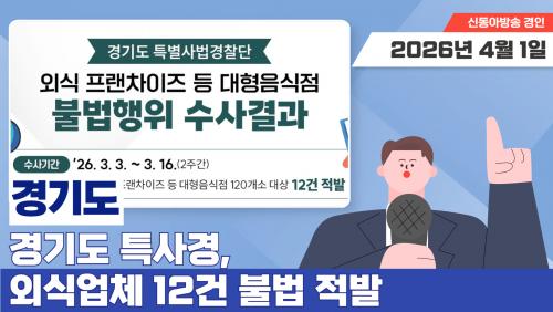 °æ±âµµ Ưº°»ç¹ý°æÂû´ÜÀº Áö³ 3¿ù 3ÀϺÎÅÍ 16ÀϱîÁö µµ³» ¿Ü½Ä ÇÁ·£Â÷ÀÌÁî¿Í ´ëÇüÀ½½ÄÁ¡ 120°³¼Ò¸¦ ´ë»óÀ¸·Î ÁýÁß ¼ö»ç¸¦ ½Ç½ÃÇØ ¿µ¾÷Àå ¸éÀû º¯°æ ¹Ì½Å°í, ¼Òºñ±âÇÑ °æ°ú ½ÄÀç·á¸¦ ¹«Ç¥½Ã·Î º¸°üÇÏ´Â µî 12°ÇÀÇ ºÒ¹ýÇàÀ§¸¦ Àû¹ßÇß´Ù°í 31ÀÏ ¹àÇû½À´Ï´Ù.