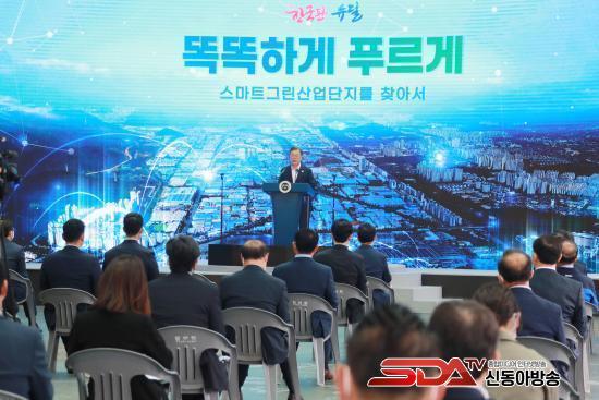 ¹® ´ëÅë·ÉÀº ¿¬¼³À» ÅëÇØ ¡°½º¸¶Æ®±×¸°»ê´ÜÀº Æ÷½ºÆ®Äڷγª¿Í ±âÈĺ¯È ½Ã´ë, µðÁöÅÐ ±â¼ú·Î ¿¡³ÊÁö ¼Òºñ¿Í ȯ°æ¿À¿°À» ÁÙÀÌ¸ç ½Å»ê¾÷ ¼ºÀå°ú ÇÔ²² »õ·Î¿î ÀÏÀÚ¸®¸¦ ´Ã·Á³ª°¥ °Í¡±À̶ó¸ç À̸¦ À§ÇÑ ¡ã»ê´Ü µðÁöÅÐÈ °¡¼ÓÈ¿Í Áַ¾÷Á¾ °íµµÈ, ¡ãÀúź¼Ò °íÈ¿À² ¿¡³ÊÁö ½ÇÇö, ¡ã±â¾÷»ó»ýÇü ÀÏÀÚ¸® Áõ°¡ µî 3´ë Àü·«À» Á¦½ÃÇß´Ù. À̳¯ º¸°í´ëȸ¿¡´Â ¹® ´ëÅë·ÉÀ» ºñ·ÔÇØ ¼ºÀ±¸ð »ê¾÷Åë»óÀÚ¿øºÎÀå°ü, ¹Ú¿µ¼± Áß¼Òº¥Ã³±â¾÷ºÎÀå°ü, ±è°æ¼ö °æ³²µµÁö»ç¿Í ½º¸¶Æ®±×¸°»ê´Ü Âü¿©±â°ü ¹× ±â¾÷ °ü°èÀÚ µîÀÌ Âü¼®Çß´Ù.