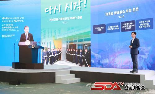 ±è°æ¼ö Áö»ç´Â ¡®4¸¸ºÒ ½Ã´ë ¼±µµ ½º¸¶Æ®±×¸°»ê´Ü, °æ³²Ã¢¿ø½º¸¶Æ®»ê´Ü 1³â 6°³¿ùÀÇ º¯È¡¯¶ó´Â ÁÖÁ¦·Î ÁøÇàÇÑ ÇÁ¸®Á¨Å×À̼ǿ¡¼ ¡°Áö³ 2018³â 12¿ù ¹®ÀçÀÎ ´ëÅë·ÉÀÌ Ã¢¿øÀ» Á÷Á¢ ã¾Æ ´ëÇѹα¹ Á¦Á¶¾÷ÀÇ Èñ¸ÁÀ» ½º¸¶Æ®Á¦Á¶Çõ½ÅÀ» ÅëÇØ ¸¸µé¾î°¡°Ú´Ù¡±°í ¹àÈù »ç½ÇÀ» »ó±â½ÃŰ¸ç ¡°Ã¢¿ø±¹°¡»ê´ÜÀÇ »õ·Î¿î ±âȸ¸¦ ¸¸µé¾î ÁØ ´ëÅë·É²² °¨»çÇÏ´Ù¡±°í ¸»Çß´Ù.