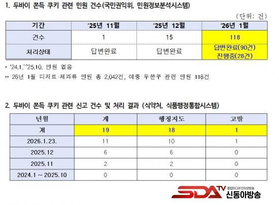 ½ÄǰÀǾàǰ¾ÈÀüó ½ÄǰÇàÁ¤ÅëÇսýºÅÛ¿¡¼µµ À¯»çÇÑ È帧ÀÌ È®ÀεƴÙ. 2024³â 1¿ùºÎÅÍ 2025³â 10¿ù±îÁö µÎÂËÄí °ü·Ã ½Å°í¡¤Á¶Ä¡´Â 0°ÇÀ̾úÀ¸³ª, ¡ã2025³â 11¿ù 2°Ç, ¡ã12¿ù 6°Ç¿¡ ÀÌ¾î ¡ã2026³â 1¿ù 23ÀÏ ±âÁØ 11°Ç(ÇàÁ¤Áöµµ 10°Ç, °í¹ß 1°Ç)À¸·Î Áõ°¡Çß´Ù. ÀÌ¿¡ µû¶ó 2025³â 11¿ùºÎÅÍ 2026³â 1¿ù±îÁö 3°³¿ù°£ ÃÑ 19°Ç(ÇàÁ¤Áöµµ 18°Ç, °í¹ß 1°Ç)ÀÇ ÇàÁ¤Á¶Ä¡°¡ ÀÌ·ïÁ® ´Ü±â°£ ³» ¹Ýº¹ÀûÀÎ À§¹Ý »ç·Ê°¡ ¹ß»ýÇÑ °ÍÀ¸·Î ³ªÅ¸³µ´Ù.