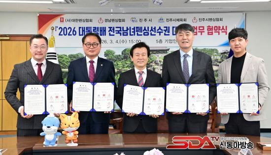 [½Åµ¿¾Æ¹æ¼Û °æ³²ÁøÁÖ=±è¸í¼ö±âÀÚ] ÁøÁֽô 4ÀÏ ½Ãû ±â¾÷ÀÎÀÇ ¹æ¿¡¼­ ¡®2026 Á¦66ȸ ´ëÅë·É¹è Àü±¹³²³àÆæ½Ì¼±¼ö±Ç´ëȸ¡¯ÀÇ ¼º°øÀûÀÎ °³ÃÖ¿Í »óÈ£ Çù·ÂÀ» À§ÇÑ ¾÷¹«Çù¾àÀ» ü°áÇß´Ù°í ¹àÇû´Ù.