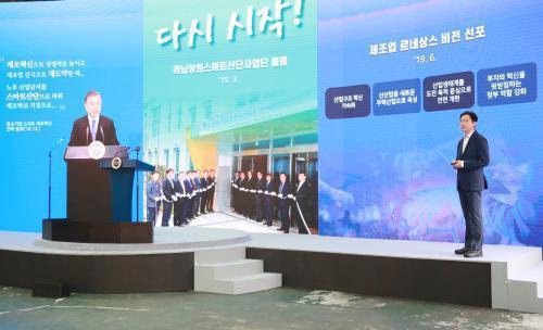 [½Åµ¿¾Æ¹æ¼Û=È«¼øÅ ±âÀÚ] ¹®ÀçÀÎ ´ëÅë·É(ÀÌÇÏ ¹® ´ëÅë·É)ÀÌ ½º¸¶Æ®±×¸°»ê´ÜÀ¸·Î ÀüȯÀ» ÃßÁø ÁßÀÎ °æ³² â¿ø±¹°¡»ê¾÷´ÜÁö¸¦ ã¾Ò´Ù. ¹® ´ëÅë·ÉÀº 17ÀÏ ¿ÀÈÄ Ã¢¿ø½Ã ¼ÒÀç ½º¸¶Æ®±×¸° ´ºµô °ü·Ã ±â¾÷ÀΠŸ²»ê¾÷°ú µÎ»êÁß°ø¾÷À» ÀÕµû¶ó ¹æ¹®ÇØ »ý»êÇöÀåÀ» µÑ·¯º¸°í ÀÓÁ÷¿ø¡¦