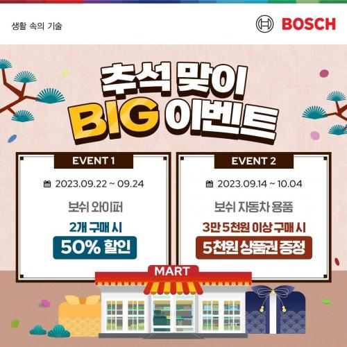 [½Åµ¿¾Æ¹æ¼Û=À̽ŵ¿±âÀÚ]º¸½¬ ÀÚµ¿Â÷ºÎǰ ¾ÖÇÁÅ͸¶ÄÏ »ç¾÷ºÎ°¡ ¸íÀý ¿¬ÈÞ¸¦ ¸ÂÀÌÇØ 9¿ù 22ÀÏ(±Ý)ºÎÅÍ 24ÀÏ(ÀÏ)±îÁö Àü±¹ À̸¶Æ®¿¡¼­ º¸½¬ ¿ÍÀÌÆÛ ±¸¸Å ½Ã 50% ÇÒÀÎ ÇýÅÃÀ» Á¦°øÇÏ´Â ¡®º¸½¬ Ãß¼® ¸ÂÀÌ ºò À̺¥Æ®¡¯¸¦ °³ÃÖÇÑ´Ù. À̹ø À̺¥Æ®´Â Ãß¼® ¿¬ÈÞ ±Í¼º±æ ¹× Àå°Å¡¦
