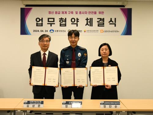 [½Åµ¿¾Æ¹æ¼Û µµºÀ±¸=À̽ŵ¿±âÀÚ]µµºÀ±¸º¸°Ç¼Ò »êÇÏ Á¤½Å°Ç°­º¹Áö¼¾ÅÍ¿Í À§Å¹ ±â°üÀÎ µµºÀÁßµ¶°ü¸®ÅëÇÕÁö¿ø¼¾ÅÍ´Â Áö³­ 4¿ù 24ÀÏ µµºÀ°æÂû¼­¿Í Á¤½ÅÀÀ±Þ ´ëÀÀ ü°è °­È­¸¦ À§ÇÑ ¾÷¹«Çù¾àÀ» ü°áÇß´Ù. º» Çù¾àÀº Á¤½Å ¹× Áßµ¶ Áúȯ°ú ÀÚ»ì½Ãµµ·Î °Ç°­°ú »ý¸íÀÇ À§ÇèÀÌ ¡¦
