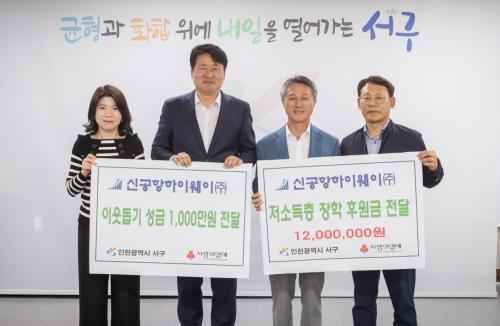 [½Åµ¿¾Æ¹æ¼Û ÀÎõ= À±¹Î½Ä ±âÀÚ]ÀÎõ ¼­±¸(±¸Ã»Àå °­¹ü¼®)´Â Áö³­ 2ÀÏ, ½Å°øÇ×ÇÏÀÌ¿þÀÌ(ÁÖ)(´ëÇ¥ ±èö¿À)·ÎºÎÅÍ ÀÌ¿ôµ½±â ¼º±Ý°ú ÀåÇÐ ÈÄ¿ø±ÝÀ¸·Î 2,200¸¸¿øÀ» Àü´Þ¹Þ¾Ò´Ù°í ¹àÇû´Ù. À̳¯ Àü´Þ¹ÞÀº ¼º±ÝÀº ÀÎõ»çȸº¹Áö°øµ¿¸ð±Ýȸ¸¦ ÅëÇØ ¼­±¸ Àú¼Òµæ °¡Á¤ ¾Æµ¿ÀÇ¡¦