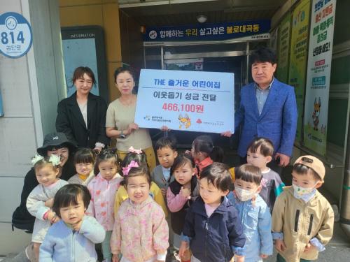 [½Åµ¿¾Æ¹æ¼Û ÀÎõ= À±¹Î½Ä±âÀÚ] ÀÎõ ¼­±¸ ºÒ·Î´ë°îµ¿¿¡ À§Ä¡ÇÑ ¡®The Áñ°Å¿î ¾î¸°ÀÌÁý(¿øÀå À̽ÂÇö)¡¯¿¡¼­ Áö³­ 17ÀÏ, ¾î¸°ÀÌÁý ¿ø»ý°ú Çкθ𰡠ÀÌ¿ô»ç¶ûÀ» À§ÇØ ÇÔ²² ¸¶·ÃÇÑ ¹ÙÀÚȸ ¼öÀͱÝÀ» ºÒ·Î´ë°îµ¿ ÇàÁ¤º¹Áö¼¾ÅÍ(µ¿Àå ¼Û¼¼Á¾)¿¡ Àü´ÞÇß´Ù. À̳¯ Àü´ÞÇÑ ¼ö¡¦