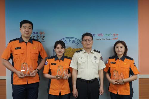 [½Åµ¿¾Æ¹æ¼Û=¿©¼ö À̼±Á¾ ±âÀÚ] ¿©¼ö¼Ò¹æ¼­(¼­Àå ¹Ú¿ø±¹)´Â 21ÀÏ ¸Å¿ù º£½ºÆ® ¼Ò¹æ°ø¹«¿øÀ» ¼±¹ßÇϴ¡®´ç½ÅÀÌ ÃÖ°í¡¯ ¼ö¿©½ÄÀ» °³ÃÖÇß´Ù. ¡®´ç½ÅÀÌ ÃÖ°í¡¯´Â ŸÀÇ ¸ð¹üÀ» º¸À̰í Àû±ØÇàÁ¤¿¡ Èû¾²´Â ´ë¿øµéÀ» °¢ ºÎ¼­¿øµéÀÌ Àû±Ø ÃßõÇÏ¿© ¼ö¿©ÇÏ´Â »óÀ¸·Î Á÷¿ø¡¦