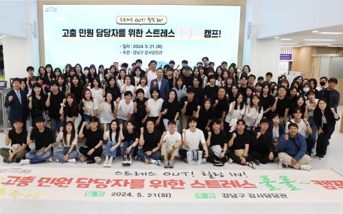 [½Åµ¿¾Æ¹æ¼Û °­³²±¸=À̽ŵ¿±âÀÚ]°­³²±¸°¡ 21ÀÏ °­¿øµµ ¿øÁֽà ¿ÀÅ©¹ë¸®¸®Á¶Æ®¿¡¼­ °íÃæ ¹Î¿ø µî ¹Î¿ø ¾÷¹«¸¦ ¸ÃÀº Á÷¿ø 120¸íÀ» ´ë»óÀ¸·Î ¡®½ºÆ®·¹½º ÈÇÈÇ~ Ä·ÇÁ¡¯¸¦ °³ÃÖÇß´Ù. ¹Î¿ø ÇüŰ¡ Á¡Á¡ º¹ÀâÇÏ°í ´Ù¾çÇØÁö°í ¹Î¿øÀÎÀÇ Æø¾ð¡¤ÆøÇà µîÀ¸·Î ¸¹Àº ´ã´çÀÚµéÀÌ ¾î¡¦