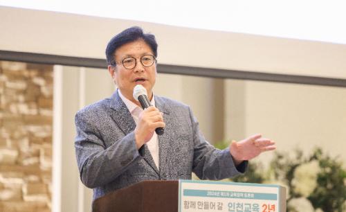 [½Åµ¿¾Æ¹æ¼Û ÀÎõ= À±¹Î½Ä±âÀÚ]ÀÎõ±¤¿ª½Ã±³À°Ã»(±³À°°¨ µµ¼ºÈÆ)Àº µµ¼ºÈÆ ±³À°°¨ ÃëÀÓ 2ÁÖ³âÀ» ¸Â¾Æ Çлý, Çкθð, ±³Á÷¿ø, ÀÎõ½Ã¹Î µî 200¿© ¸íÀÌ Âü¼®ÇÑ °¡¿îµ¥ 2024³â Á¦1Â÷ ±³À° Á¤Ã¥ Åä·Ðȸ¸¦ 22ÀÏ ¹®Çаæ±âÀå¿¡¼­ °³ÃÖÇß´Ù. Åä·Ðȸ´Â ¡®ÇÔ²² ¸¸µé¾î °¥ ÀÎõ¡¦